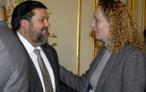 Noemí Martín saluda al ministro de Justicia, Francisco Caamaño, tras la firma del protocolo que rubricaron ambas administraciones. :: E. C.