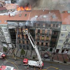 En siete horas de impotencia, el fuego destruyó un edificio modernista y protegido de Juan Miguel de la Guardia el 58 de la calle Uría, derruyó parcialmente el 25 de Melquíades Álvarez, también catalogado, y se llevó la vida del bombero Eloy Palacio. Todo ante los ojos de cientos de ovetenses que vieron el 7 de abril cómo los bomberos eran incapaces de controlar un incendio en pleno corazón de la ciudad.