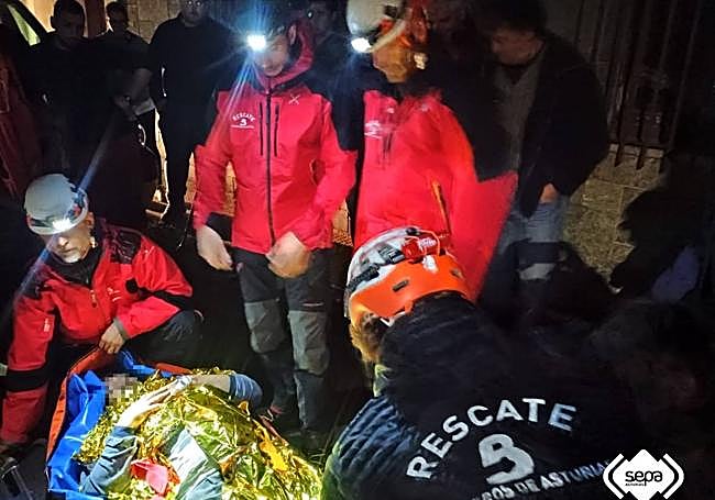 El afectado, un hombre de 52 años, tuvo que ser evacuado tres kilómetros a pie por los bomberos y los vecinos hasta la localidad de Pola del Pino donde esperaba la UVI móvil de Mieres