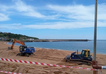 Trabajos para redistribuir la arena en Santa Marina, Luanco