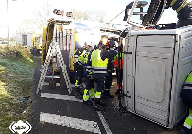El Centro de Coordinación de Emergencias del 112 Asturias recibió el aviso a las 09.58 horas. En la llamada indicaban que había un camión que transportaba cargado de gasoil volcado en la citada carretera y había un pequeño vertido.