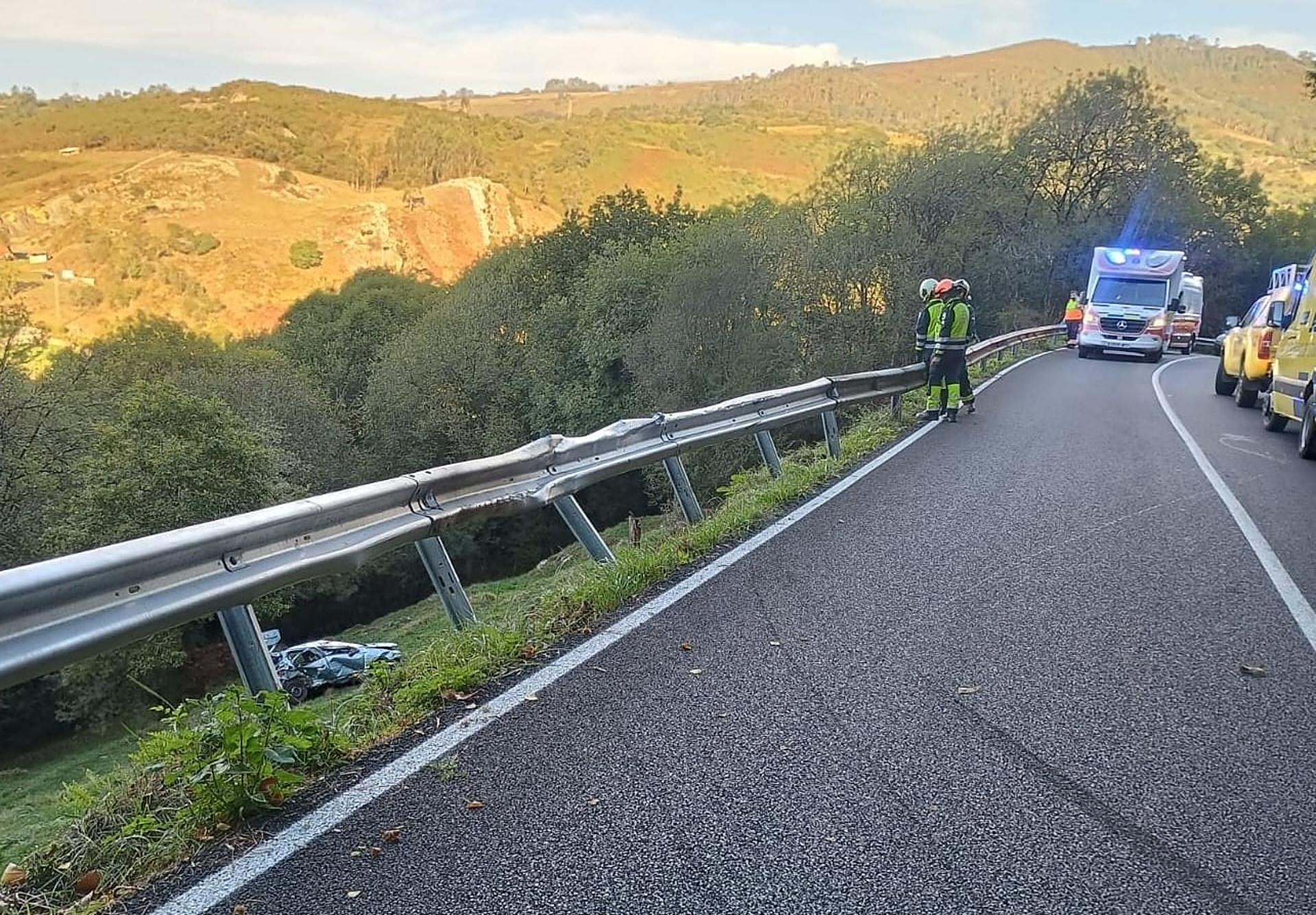 El Centro de Coordinación de Emergencias del 112 Asturias recibió el aviso a las 17.34 horas. En la llamada indicaban que un coche se había salido de la carretera y había caído por un desnivel de más de veinte metros.