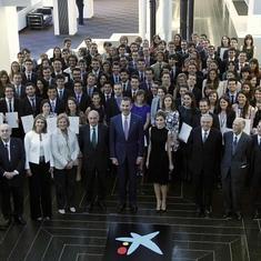 Cuatro alumnos asturianos reciben una beca de 'La Caixa' de manos de los reyes Felipe y Letizia
