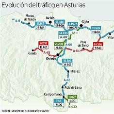 La crisis económica no explica por sí sola la pérdida de pulso en esta rama de la infraestructura, por lo que conviene analizar lo que sucede en la autovía AS-II, su principal competidor en los tráficos entre Oviedo y Gijón.La alternativa inaugurada en 2007 tardó en consolidarse debido a la crisis, pero en 2014 es de las pocas pistas en la región que ha registrado algún incremento de uso, concretamente un 1,3%. Con 21.476 vehículos diarios, la autovía de peaje en sombra adquiere por primera vez en su historia un volumen de tráfico que supone ya la mitad del que tiene Serín-Gijón.