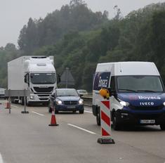 El corte del carril derecho de la A-66 desde Oviedo en dirección a Gijón y Avilés se realizó el lunes a las nueve de la noche y se espera que los trabajos finalicen hoy.