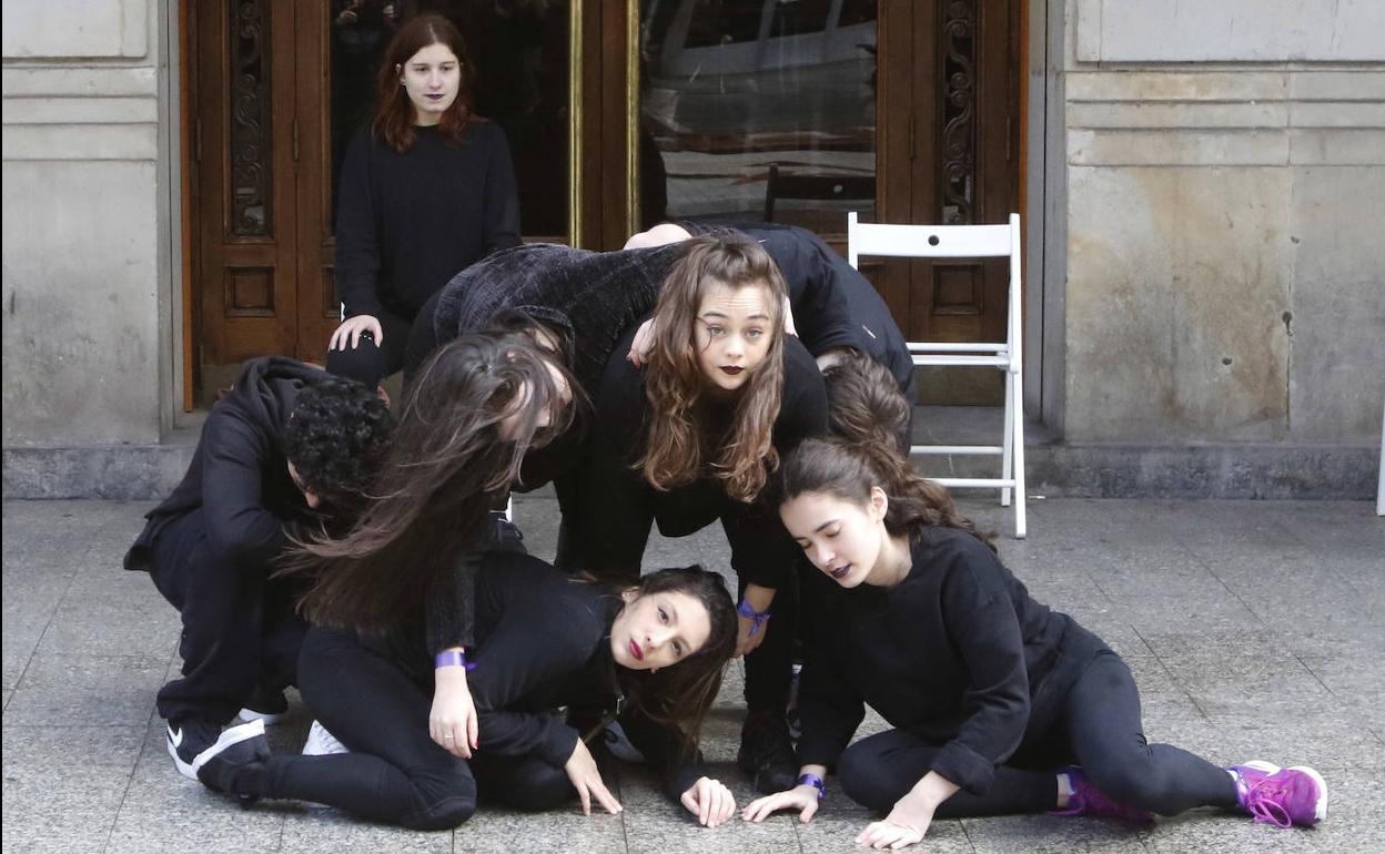 Los alumnos de la Escuela Superior de Arte Drámatico han protagonizado una coreografía ante el Jovellanos con motivo del 8M impulsada por EL COMERCIO