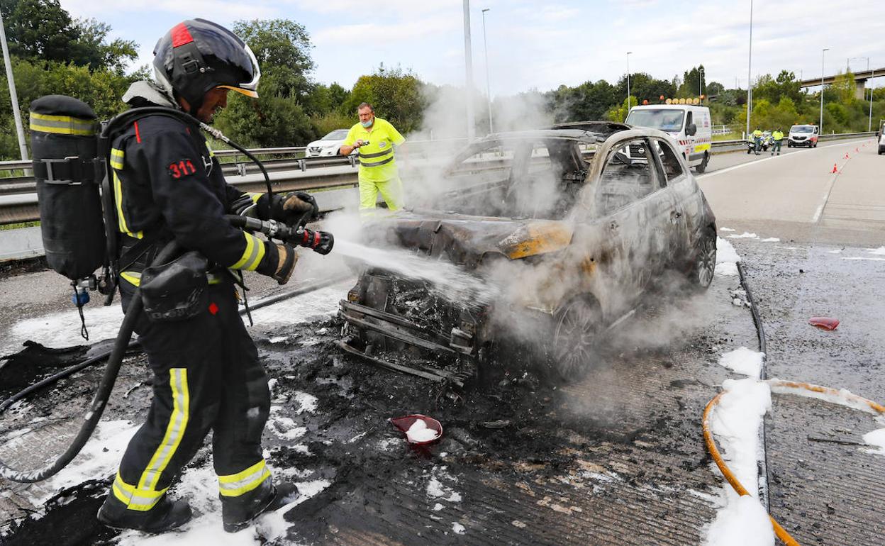 Varias dotaciones de Bomberos del parque de Gijón, varias patrullas de Guardia Civil y una UVI móvil se personaron en la zona a los pocos minutos. Una vez atendidos los heridos, dos de los cuales eran los conductores de los vehículos accidentados, los bomberos procedieron a apagar el fuego para poder retirar los turismos y restablecer el tráfico. La autovía permaneció cortada durante 41 minutos generando retenciones de hasta tres kilómetros.