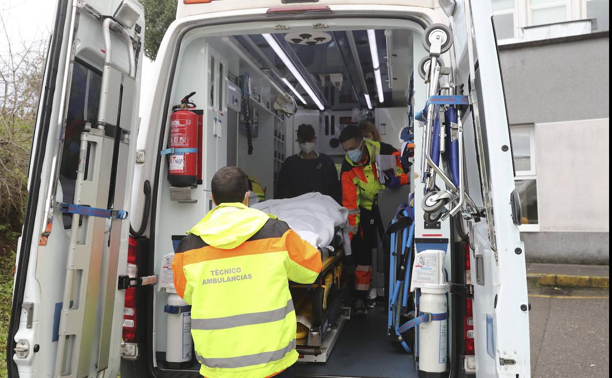 Sonaba el reloj dando las diez de la mañana, cuando recibieron el primer aviso. Una paciente psiquiátrica que recogieron en su domicilio y trasladaron hasta el hospital de Jove, que cuenta con este tipo de atención. Vuelta a la base y a esperar. «Ya que me toca trabajar, es mejor que haya avisos porque si no, el tiempo no pasa», declara Sergio Bernardo. «Lo mejor es un punto intermedio», le rebate su compañero. Y es que han tenido días en los que no han tenido tiempo ni de pasar por el centro a descansar cinco minutos. La mañana se presenta tranquila. Ambos descansan en una sala habilitada para ellos, donde cuentan con una cama, un sofá, una mesa donde comer, una pequeña nevera y un microondas. «Está bastante bien, aquí podemos descansar los ratos libres que tenemos», explican. No es hasta las 11.51 cuando reciben el siguiente aviso. Ambos se ponen la chaqueta. «Vamos para allá», responden a la llamada. Se suben a la ambulancia. Guantes, sirena y a funcionar. Una mujer con dolor en el pecho, mareos y palpitaciones había llamado al centro unos minutos antes. Entonces, se desplazaron una médico y una enfermera para evaluar la situación. Ahora necesitan de los técnicos. La recogen en camilla y se dirigen a las Urgencias del hospital de Cabueñes. En cuanto la mujer está dentro, recogen los artículos empleados y, antes de subirse de nuevo al vehículo, nuevo aviso. Esta vez la llamada viene del Servicio de Asistencia Médica Urgente del Principado de Asturias (SAMU). Repiten protocolos, el equipo médico va con ellos en la ambulancia y al llegar se encuentran con un posible paciente covid. No se les permite entrar en el domicilio, así que recogen y se vuelven a la base. Una ambulancia especializada en coronavirus se dirige para el lugar.