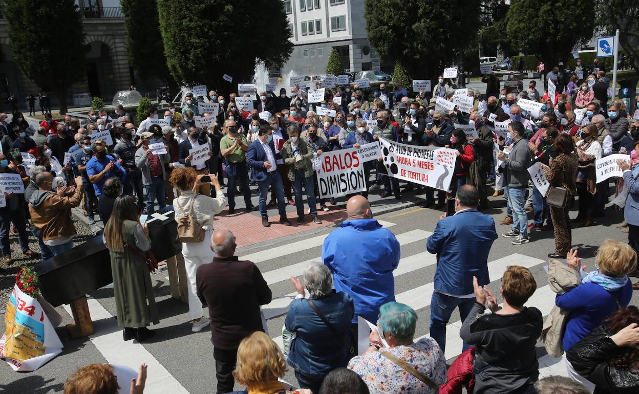 Cientos de coches y camiones, entre vecinos y empresarios de la comarca, llegan en caravana ante la sede de Delegación del Gobierno para exigir una «solución rápida y eficaz»