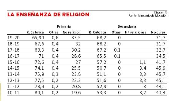 En Secundaria, la materia registra la evolución contraria: ha ganado un 14% en los últimos cursos. Solo un 0,6% elige otras religiones