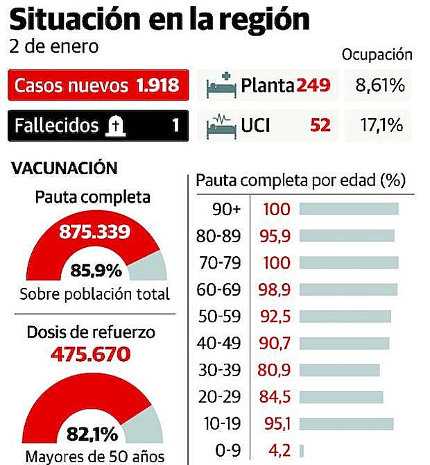 Los casos siguen disparados en Asturias. Y en España. Porque las cifras espectaculares que se vienen registrando en la región están en consonancia con lo que está sucediendo en todo el país. Salud llevaba cuatro días sin actualizar las cifras de contagios diarios y, cuando lo hizo ayer, rápidamente se confirmó el peor de los presagios: casi 8.000 positivos en este periodo. Fueron peores los dos últimos días de 2021 -2.055 y 2.029, respectivamente- que los dos primeros de 2022 -1.965 y 1.918-, pero aún queda ver el efecto rebote de las celebraciones de Nochevieja.