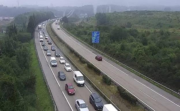 Una veintena de viajeros de Iberia, en tierra por el atasco de la A-8 en Gijón