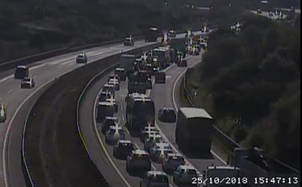 La colisión, que tuvo lugar en torno a las 15.10 horas, causó retenciones kilométricas y obligó a cortar uno de los carriles de circulación.