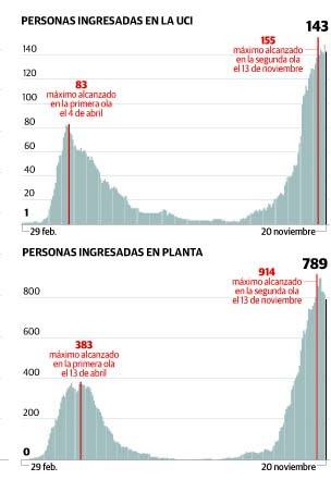 Eso sí, aunque los datos -el viernes hubo 348 contagios y las altas (148) superaron por cuarto día esta semana a los ingresos hospitalarios (112)- avalan esa mejoría que apunta el presidente regional, los datos de fallecimientos siguen siendo desoladores. Veinte personas con covid murieron el viernes: nueve mujeres y once hombres de entre 55 y 93 años. Además, cuatro de estas personas que fallecieron vivían en una residencia de mayores.