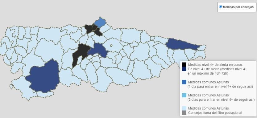 La idea del Principado era imponer unas condiciones más estrictas duras para hacer frente a la tercera ola de la pandemia a aquellos municipios que durante tres días consecutivos sobrepasen ciertos indicadores, como la incidencia acumulada en la población general y en los mayores de 65 años durante 14 días y la trazabilidad de los casos. Medidas como el cierre perimetral, el cierre de centros comerciales y de la hostelería de interior o la limitación de las reuniones sociales a cuatro personas se aplicarían 48 horas después de que la Consejería de Salud señale los concejos que cumplen esos requisitos. A partir de ahora, la Consejería de Salud publicará un listado diario de los municipios con una mayor incidencia del virus y, por tanto, sujetos a las limitaciones.