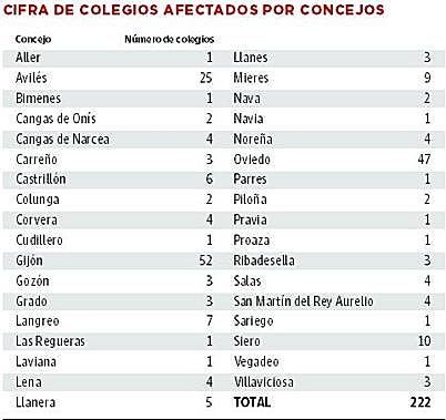 En la última semana, un total de 222 colegios de Asturias (incluidas las escuelas de 0 a 3 años) han sufrido diversas incidencias relacionadas con la covid. Los mayores problemas han tenido lugar en las tres principales ciudades: 52 centros de Gijón, 47 de Oviedo y 25 de Avilés.