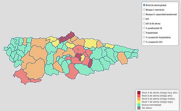 Es un escenario que se puede observar con los nuevos datos que desde hoy facilita el Observatorio de Salud del Principado, que permite acceder a un «mapa semafórico» con los datos concejo a concejo.