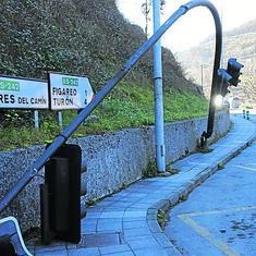A media tarde del día de Año Nuevo, uno de los semáforos cercanos al barrio mierense de Santullano, en dirección a Turón, fue derribado por una ráfaga de aire que alarmó a los vecinos de la zona durante algunos minutos. Afortunadamente, no hubo que lamentar daños personales, pero el semáforo quedó tendido en el suelo. Curiosamente, el dispositivo continúa en funcionamiento. El incidente no llegó a interrumpir la circulación de la zona, aunque los vecinos se quejan de «nadie se ha preocupado de retirarlo para prevenir riesgos».