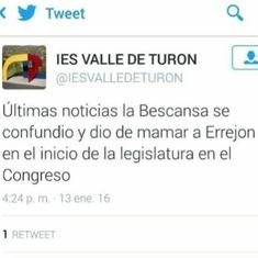 Política y educación se enredan en el instituto Valle de Turón. Los habituales comentarios políticos emitidos en la cuenta oficial de Twitter del Instituto de Educación Secundaria (IES) Valle de Turón por uno de sus profesores han acabado con la cancelación de la cuenta y la reclamación de sanciones.