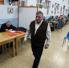 La tonada minera sonó, un sábado más, en la localidad langreana de La Nueva, inmersa en la celebración de Santa Bárbara la patrona de la familia minera. Así, en la tarde de ayer, se celebró la séptima eliminatoria del XXIII Concurso de la Canción Asturiana en el local de la Asociación Cultural y Vecinal San Luis. Una jornada marcada por la excelente calidad de todos los intérpretes. En la imagen, Marcelino Díaz se dirige al escenario, con los jurados Avelino Fernández y María Luisa Díaz, al fondo.