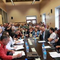 No hubo sorpresa, e IU contó con el apoyo del concejal de la Agrupación Morciniega Independiente (AMI), Jesús Menéndez, y de la edil de Somos, María Antonia García, sumando así la mayoría absoluta necesaria. En el turno de palabra, los diferentes portavoces explicaron sus motivos para presentar y apoyar la moción. El público escuchaba los argumentos a favor y en contra de cada parte. Antes de proclamarse alcalde, 'Mino' reprochó a los socialistas la frivolización de la iniciativa «o incluso el intento de ridiculizar a quienes la presentamos», en referencia al cómic sarcástico buzoneado por el PSOE.