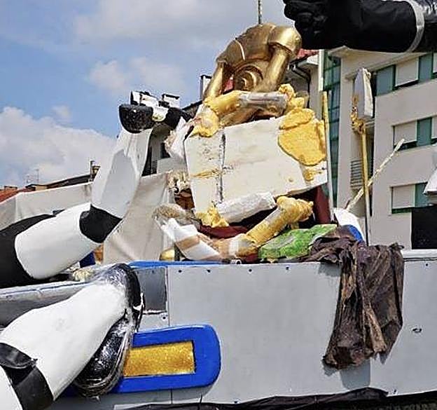 «Absoluta decepción». Así mostraban su indignación los organizadores del Descenso Folklórico del Nalón al hacer público que el pasado viernes por la noche «a alguien se le ocurrió destrozar la carroza ganadora de este año, la de la peña LDO (Los Del Patio)». Desde la Asociación Amigos del Descenso explicaban que «es una pena que por 30 segundos de diversión tengamos que fastidiar el trabajo de otros».