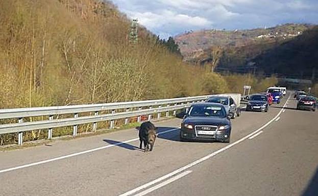 Eran en torno a las nueve y cuarto de la mañana cuando los conductores que transitaban por el corredor del Nalón entre las localidades de Laviana y Barredos se percataron de la presencia de un jabalí «de gran tamaño» que caminaba por la carretera. Pocos minutos tardaron en personare en el lugar agentes de la Policía Local de Laviana y de la Guardia Civil, que se encargaron de regular el tráfico y de cercar al animal para capturarlo.