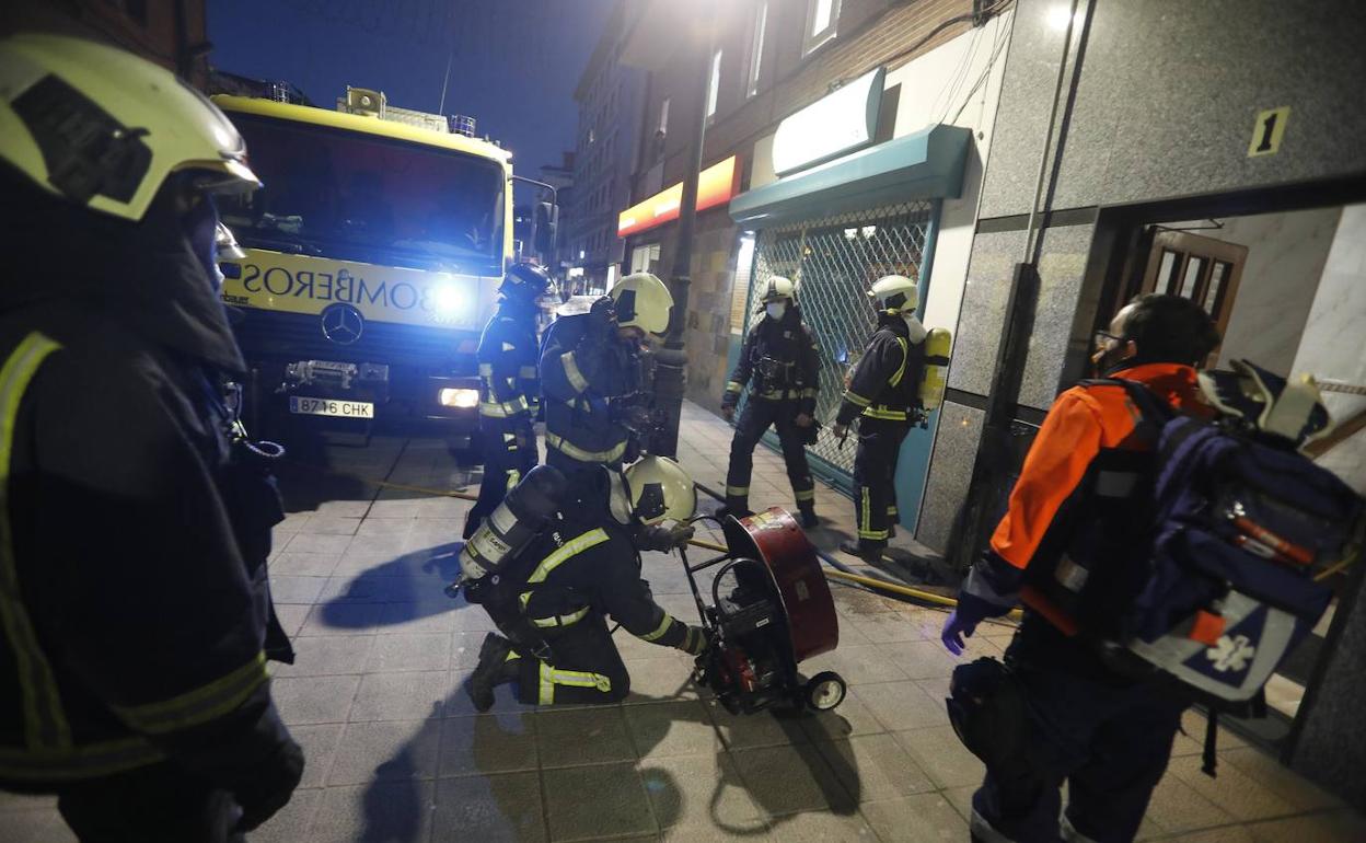 Cinco heridos leves en un incendio en pleno centro urbano de La Felguera