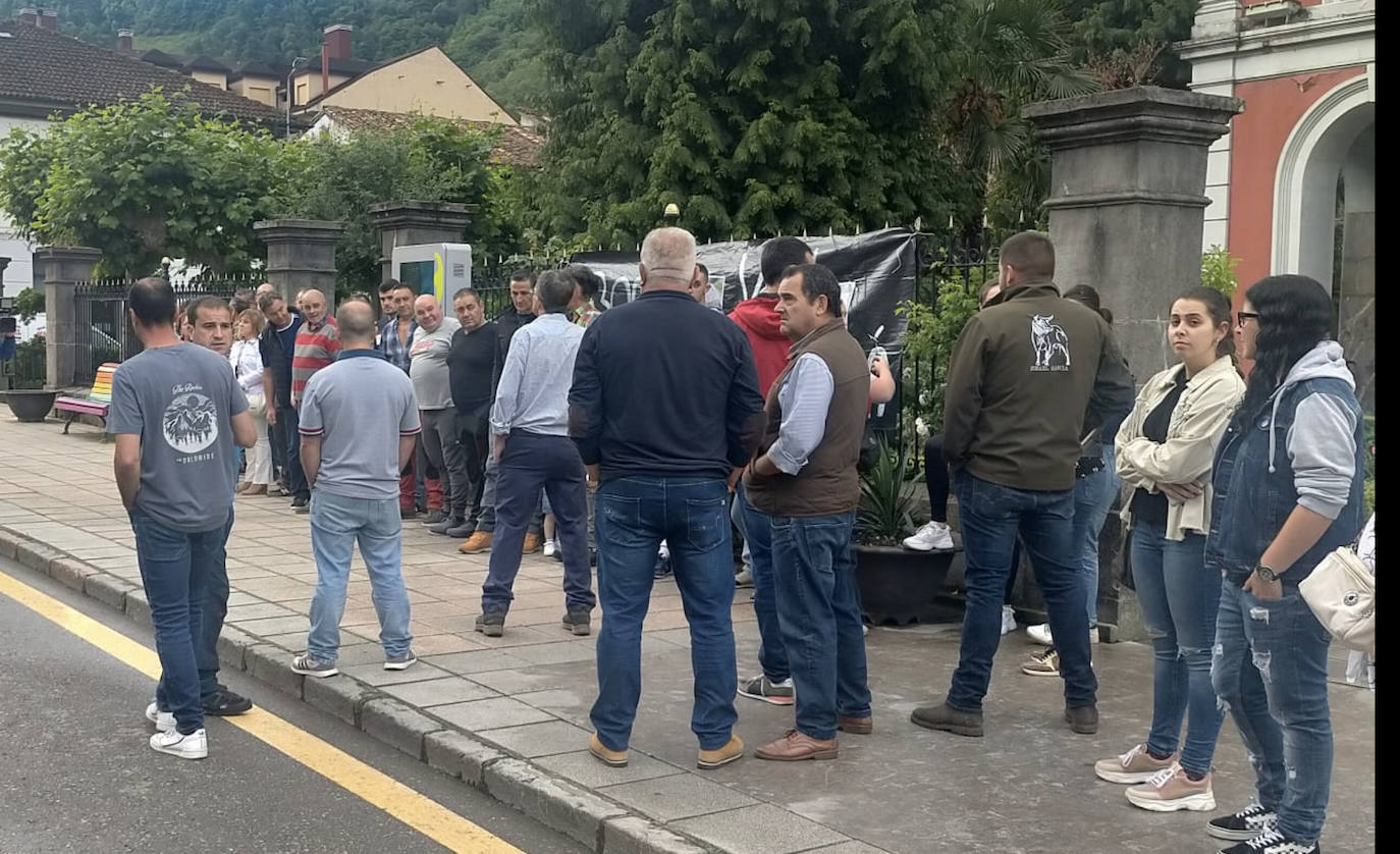 Más de medio centenar de ganaderos se han reunido como señal de protesta delante del Ayuntamiento de Aller para exigir mejoras en los accesos al puerto