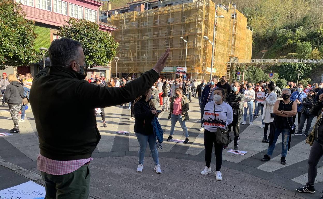 A las 12 del mediodía de hoy estaba convocada una concentración organizada por la Unión de Comerciantes y Hosteleros del Caudal. Una hora antes, decenas de autónomos ocupaban la plaza del ayuntamiento, el espacio reservado para la primera de las protestas. Se produjeron discusiones y disputas entre ellos, evidenciando una división y tensión entre ellos. En el fondo todos piden lo mismo, poder trabajar, pero las formas son lo que les diferencian. «Yo no me voy a unir a un acto con carteles que piden la dimisión Barbón», decía Loli Olavarrieta, la presidenta de la Unión. Los otros, sin un paraguas organizativo, no renunciaban a sus quejas. Al final, no hubo lectura de un manifiesto preparado y no hubo unidad.