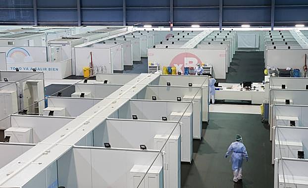 El recinto ferial es la muleta sobre la que se apoyan el resto de hospitales, que han sufrido un desbordamiento sin precedentes. La mayoría de los 115 pacientes hasta ahora atendidos procedían de Cabueñes, el HUCA y Jove.