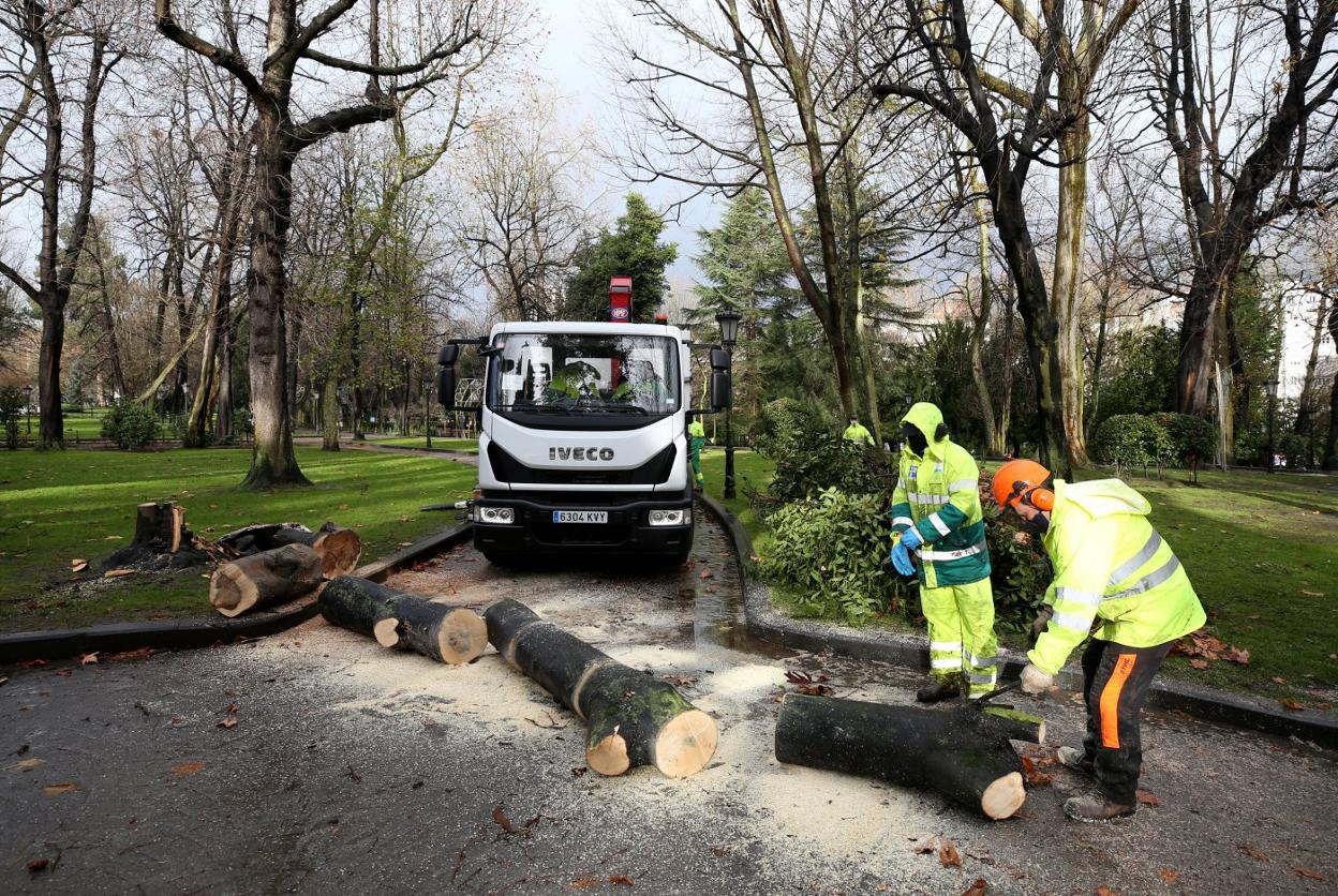 El Campo de San Francisco fue acordonado por la mañana para evitar daños personales ante la posible caída de árboles. Fueron finalmente dos los que se vinieron abajo, según informaron fuentes de la Concejalía de Seguridad Ciudadana. Uno de ellos era de grandes dimensiones que se ubicaba muy cerca del parque canino. A media mañana, los técnicos cortaron el tronco para retirarlo. El otro, estaba plantado próximo al monolito en recuerdo a las víctimas del Holocausto.