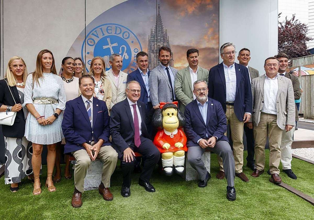 La convocatoria de la visita institucional era del grupo parlamentario y grupo municipal (de Gijón), pero estuvieron arropados por concejales venidos de varios puntos de la geografía asturiana. «¡Es que somos muchos!», señalaba la parlamentaria Pilar Fernández Pardo. Y lo fueron, sí. Tanto que no entraban todos en la foto de familia de la primera parada del recorrido, junto a Mafalda, en el pabellón de Oviedo. Esto es algo que también señaló Diego Canga, que el Partido Popular ha pasado de 10 a 17 diputados y aumentado notablemente su representación municipal.