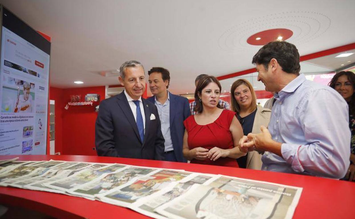 La portavoz del PSOE en el Congreso visita el estand de EL COMERCIO