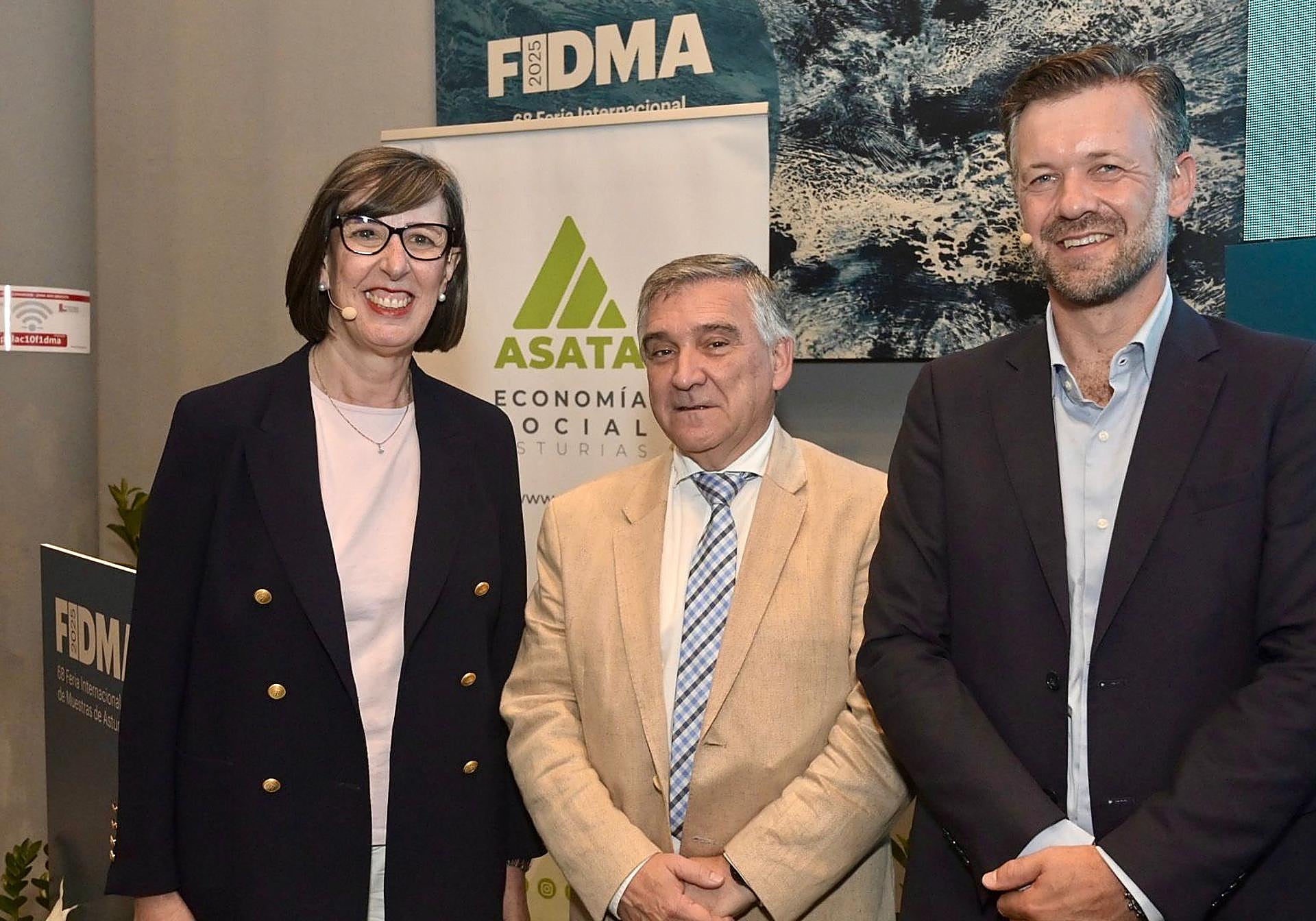 Este año Asata dedicó su jornada en la Fidma a la economía azul, un ámbito donde su presidente ve «una oportunidad única para que Asturias lidere un desarrollo inclusivo, sostenible y conectado con sus comunidades costeras». La vicealcaldesa y concejala de Economía, Empleo, Turismo e Innovación de Gijón, Ángela Pumariega, recordó que esa economía «es una de las claves del futuro de la ciudad» y se ofreció a incorporar a Asata al 'think tank' impulsado por el Ayuntamiento y que analiza las potencialidades de ese campo. En lo que respecta al sector de la economía social, destacó la combinación entre «vuestra condición empresarial y dinamizadora del tejido productivo y la vertiente social», aprovechando su discurso para recordar una empresa como la de los Serenos de Gijón, que este año cumplió 25 años y recibió la Medalla de Plata de Gijón.