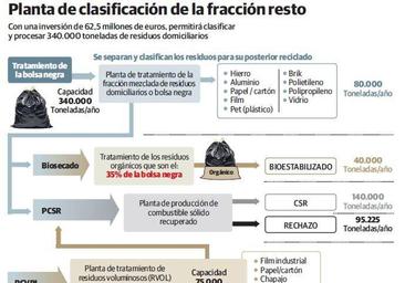 El pasado día 2 de enero el Consorcio de gestión de residuos (Cogersa) puso a funcionar la «plantona», una fábrica que procesará las bolsas de basura que los asturianos arrojan al contenedor que no es de reciclaje. La instalación someterá a los materiales a distintos procesos de recuperación, produciendo al cabo de los mismos unas 150.000 toneladas de Combustible Sólido Recuperado (CSR). Se trata de unos fardos de desperdicios desecados, triturados y cribados con un limitado poder calorífico.