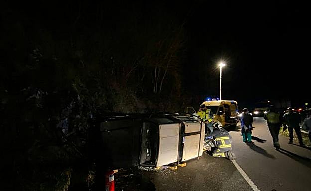 Efectivos de Bomberos del Servicio de Emergencias del Principado de Asturias (SEPA), con base en el parque de Villaviciosa, han excarcelado a un hombre herido en un accidente de tráfico, un salida de vía y un vuelco, en la AS-332, en Sietes, Villaviciosa. Según los datos facilitados por el Servicio de Atención Médica Urgente (SAMU) el afectado ha sido trasladado al Hospital de Cabueñes.