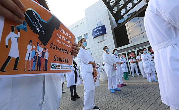 «Salvemos la Sanidad». Este es uno de los mensajes que clamaban ayer los médicos asturianos en las concentraciones de todos los hospitales de Asturias y en algunos centros de salud para secundar la huelga a escala nacional. Este parón fue convocado por la Confederación Estatal de Sindicatos Médicos (CESM) y es la primera huelga del personal facultativo que se hace en todo el país desde la de hospitales de 1995. El colectivo salió a la calle para pedir la «retirada inmediata del Real Decreto Ley 29/2020 por poner en riesgo la seguridad de los pacientes».