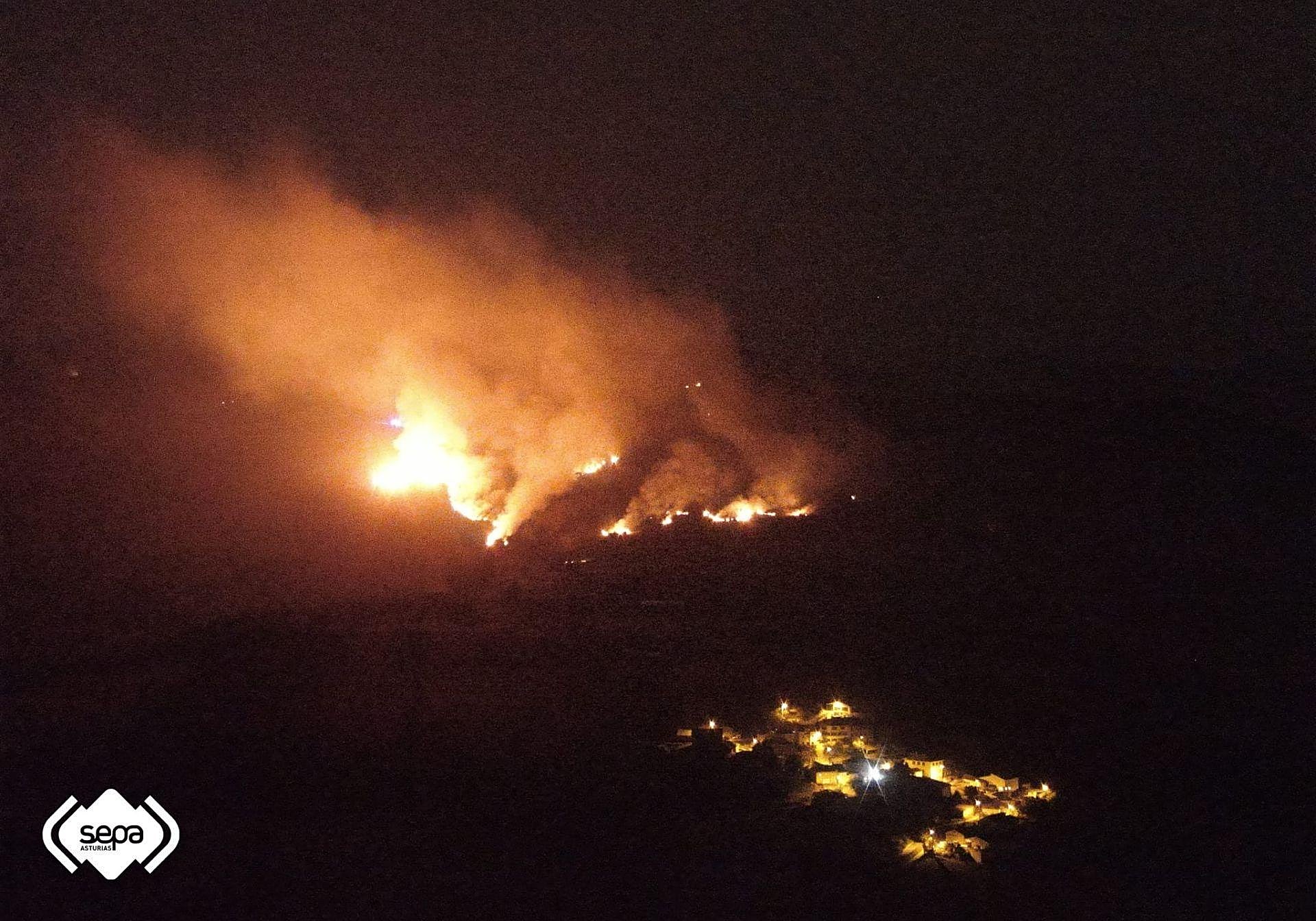 Los vecinos del Alto del Acebo, en Cangas del Narcea, pasaron la noche en vilo asediados por una llamas que fueron controladas a primera hora de la mañana. La región, que está en situación 2 de emergencia y cuenta con la ayuda de la UME, tiene once focos activos