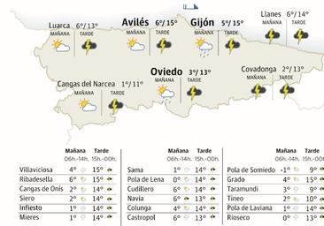 El Sábado Santo seguirán las lluvias, aunque con menor intensidad, y se esperan subidas generalizadas de las temperaturas, que pueden llegar hasta los 18 grados, que son los previstos en Avilés y Gijón. El Domingo de Pascua, las nubes alternarán con los claros. Eso sí, los chubascos seguirán.