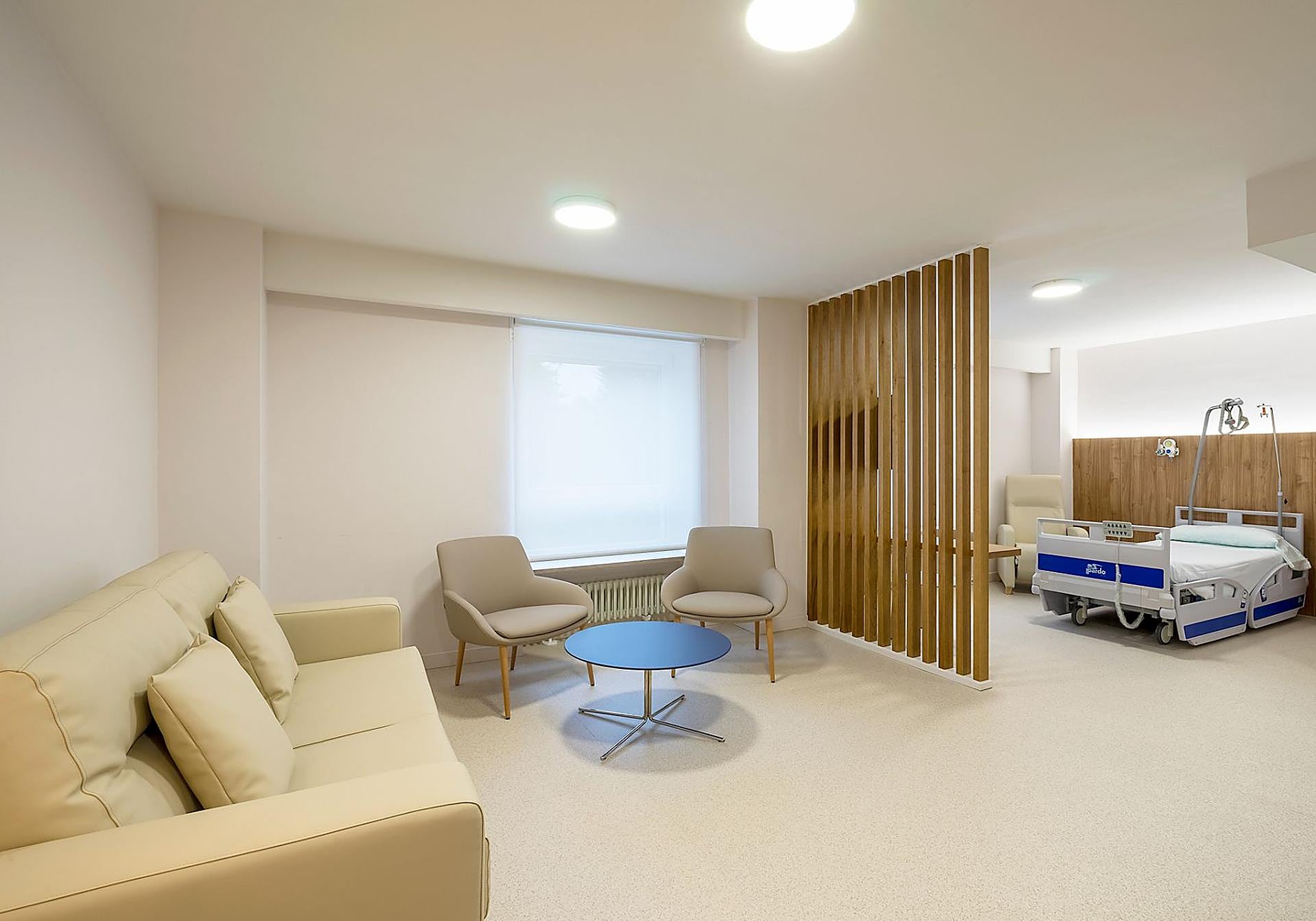 La dignidad en la fase final de la vida se sustenta en gestos concretos y en el entorno que la aloja. Dolores, auxiliar de enfermería destaca que contar con habitaciones individuales proporciona «un entorno de tranquilidad e intimidad, fundamental para el bienestar del paciente y su familia. Se viven momentos de gran emoción». El modelo de atención se basa en el respeto, la dignidad y el alivio del sufrimiento, priorizando el confort y la calidad de vida en cada etapa. El hospital cuenta con habitaciones individuales luminosas, algunas con sala para familiares, y posibilidad de personalizar la habitación son elementos que ayudan a crear un ambiente familiar.