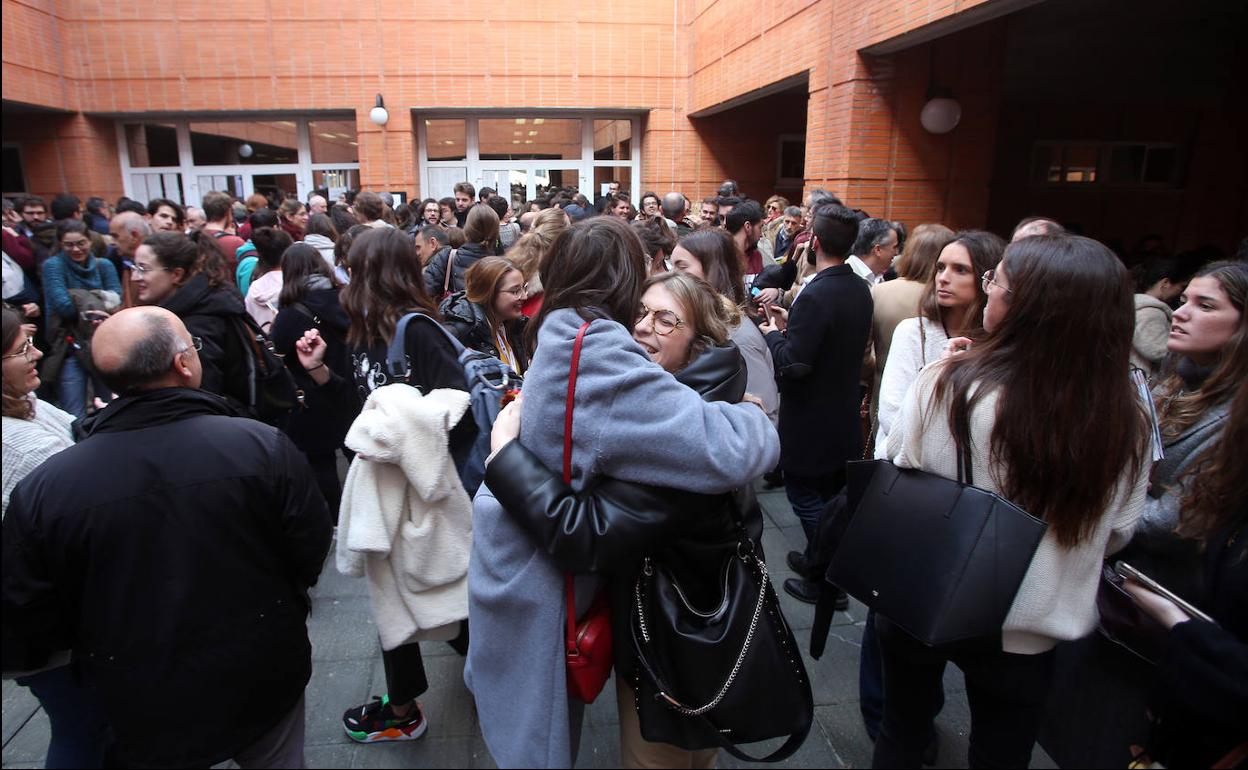 de 6.797 a 7.512 (un 10% más), 232 de ellas en Asturias. Poco antes de las tres de la tarde, la Facultad de Derecho de la Universidad de Oviedo, en el Campus del Cristo, se convertía en un hervidero de jóvenes que intercambiaban en corrillo las últimas impresiones antes de enfrentarse una prueba. La ahora de entrada al aula fue a las 15.30 horas, el inicio de la prueba fue a las 16 horas y la finalizará a las 20 horas, según el horario previsto.