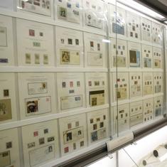 El resultado es una estancia alargada, con sendas cristaleras que reúnen, pulcramente pegados y documentados, los tres bloques de material que se exponen: en primer lugar, uno dedicado a la Navidad; en segundo lugar, uno de historia postal de España y el extranjero; y, por último, uno dedicado a la región.