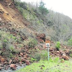 Ya es posible transitar por la vía a pesar de que continúan trabajando en la limpieza total de la tierra y piedras que cayeron sobre la calzada