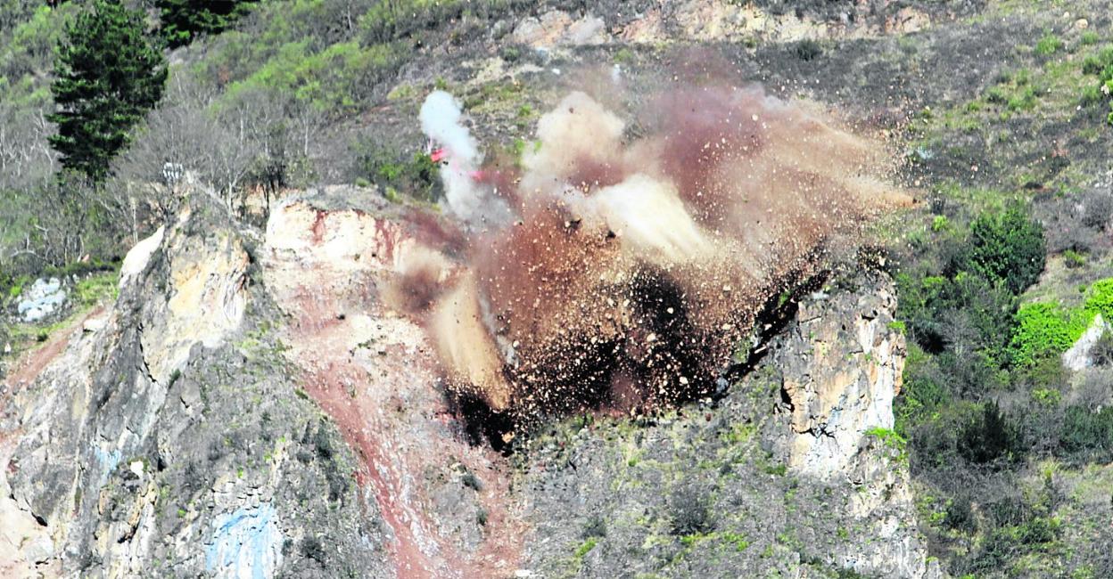 Arrancan las voladuras para asegurar la ladera de la AS-15 en Soto de la Barca