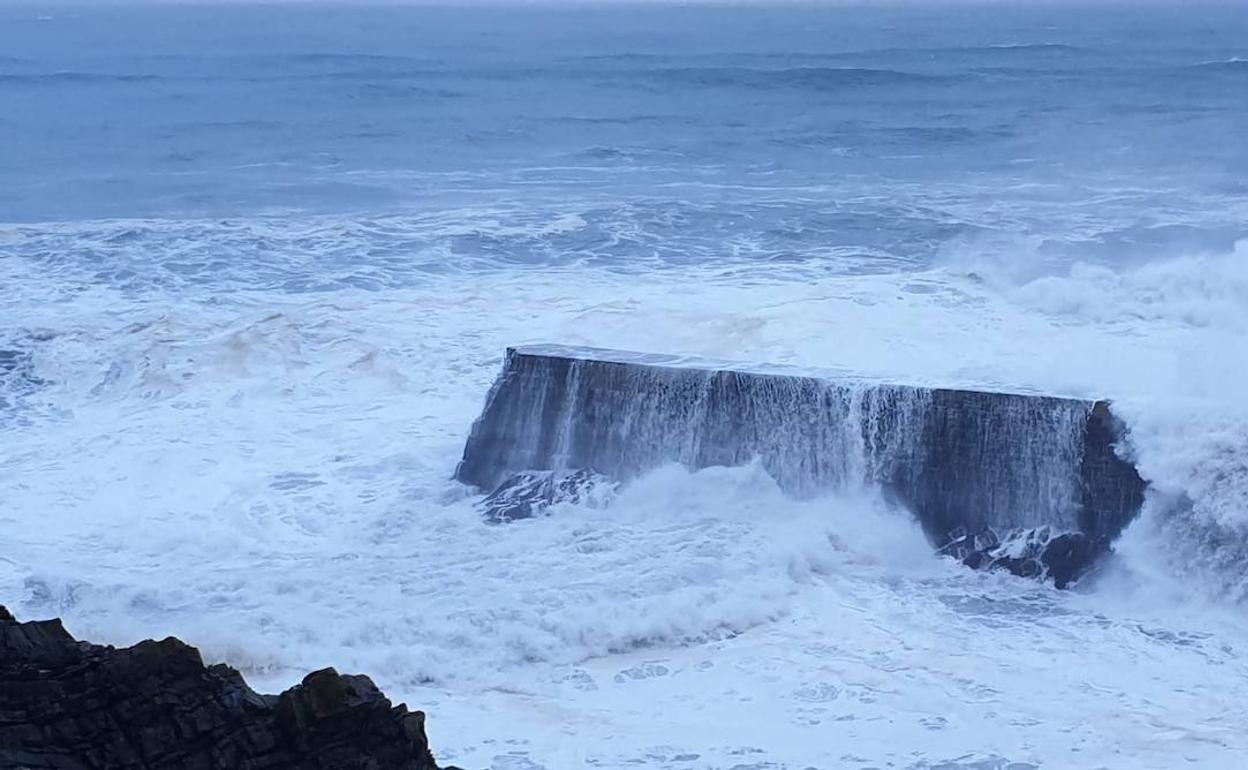 La borrasca 'Bella' derriba el faro de acceso al puerto de Viavélez