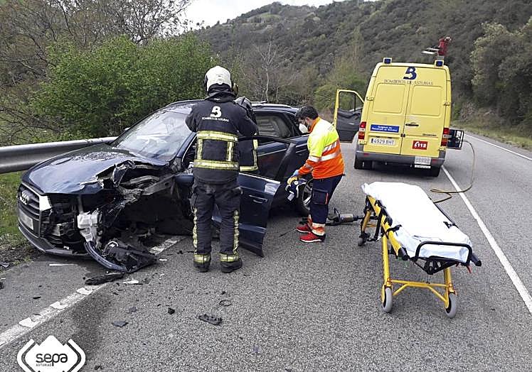 Uno de ellos tuvo que ser excarcelado del interior del turismo por efectivos de Bomberos del Servicio de Emergencias del Principado de Asturias (SEPA) con base en el parque de Grado. Los bomberos retiraron la puerta del coche para que los equipos sanitarios pudiesen inmovilizarlo con collarín.