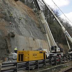 Los operarios se encargan en estas jornadas de colocar la segunda malla de contención, de cable de acero y anclada por bulones, que completa a la de triple torsión ya fijada. Si todo marcha debidamente, estará resuelto para Semana Santa y, una vez que concluyan estos trabajos de sujeción de la ladera, «entendemos que, por razones de seguridad, se puede restablecer el tráfico alternativamente en esa zona», indicaba De Lorenzo. El siguiente paso a dar será el de la construcción de un falso túnel de 70 metros que no interrumpirá al tráfico, ya que se levantará simultáneamente.