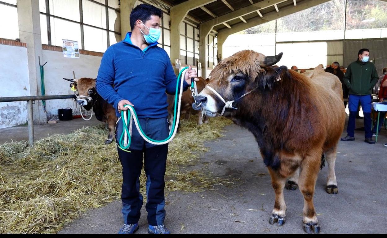 'Babiano', con una calificación morfológica de 78,40 puntos, 423 kilos de peso y 32 centímetros de circunferencia escrotal, se fue para la localidad canguesa de Llueves. Su comprador, Máximo Sánchez, reconoció que fue el ejemplar que más le gustó desde el principio, por lo que estaba decidido a hacerse con él. «Me había puesto de límite 2.500 euros, aunque llegado el momento igual te calientas y terminas ofreciendo más», indicó. No obstante, apuntó, «la subasta estuvo un poco fría» y no llegaron a subir tanto los precios como en años anteriores. «Es lógico,la cosa está muy mal y si la carne no vale nada, los animales tampoco, es todo una cadena», lamentó el ganadero.