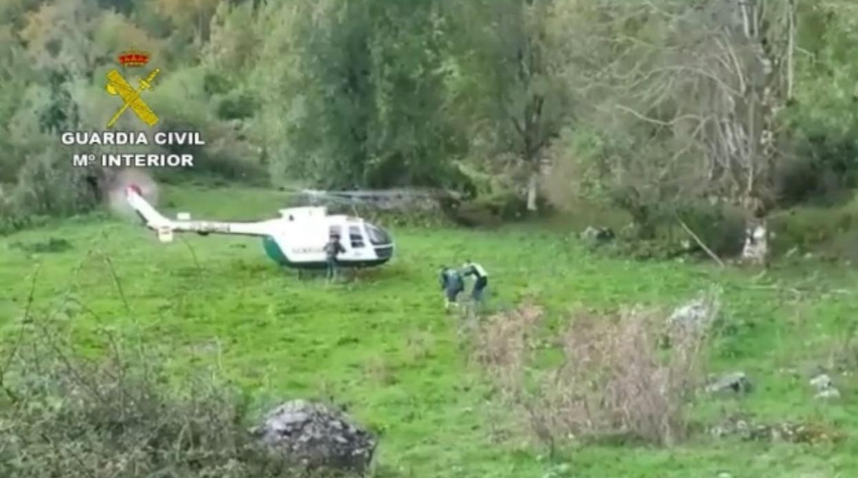 Así, el grupo se dirigió a una cabaña cercana, procediendo a su vez los agentes a dar aviso a la Unidad de Helicópteros de la Guardia Civil (UHEL) de Asturias. Finalmente, al filo de las ocho de la mañana, ya con las primeras luces del día, la aeronave despegaba de su sede de La Morgal para recoger a los dos senderistas ovetenses, así como a los especialistas de montaña, al perro y a su guía. Para ello fue necesario realizar un total de tres ciclos de vuelo.